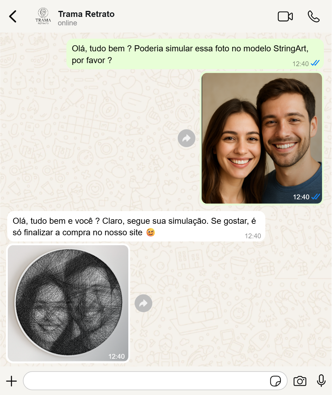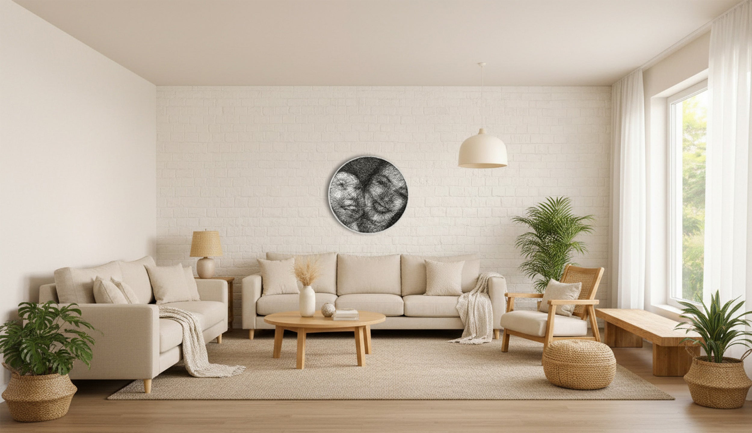 String Art é uma técnica incrível onde centenas (às vezes milhares!) de fios se cruzam, formando retratos realistas e cheios de emoção. Cada detalhe do rosto, cada sombra e cada expressão ganham vida através dos fios — criando um quadro único, sofisticado e totalmente personalizado.