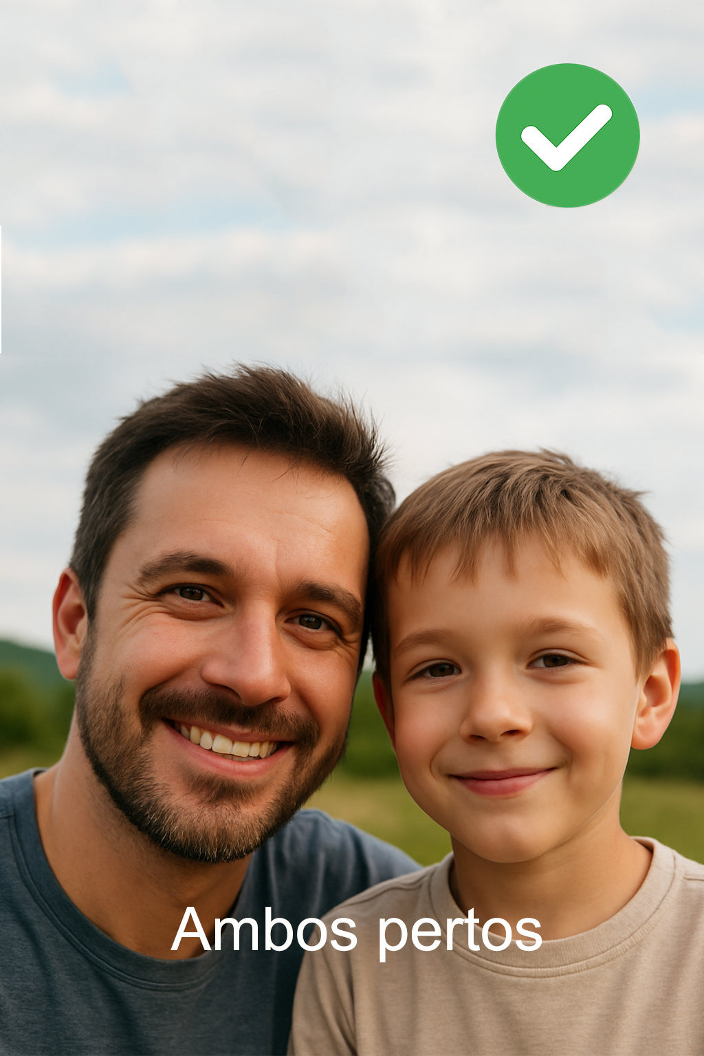 Fotos em grupo: todos juntos, bem iluminados e visíveis.