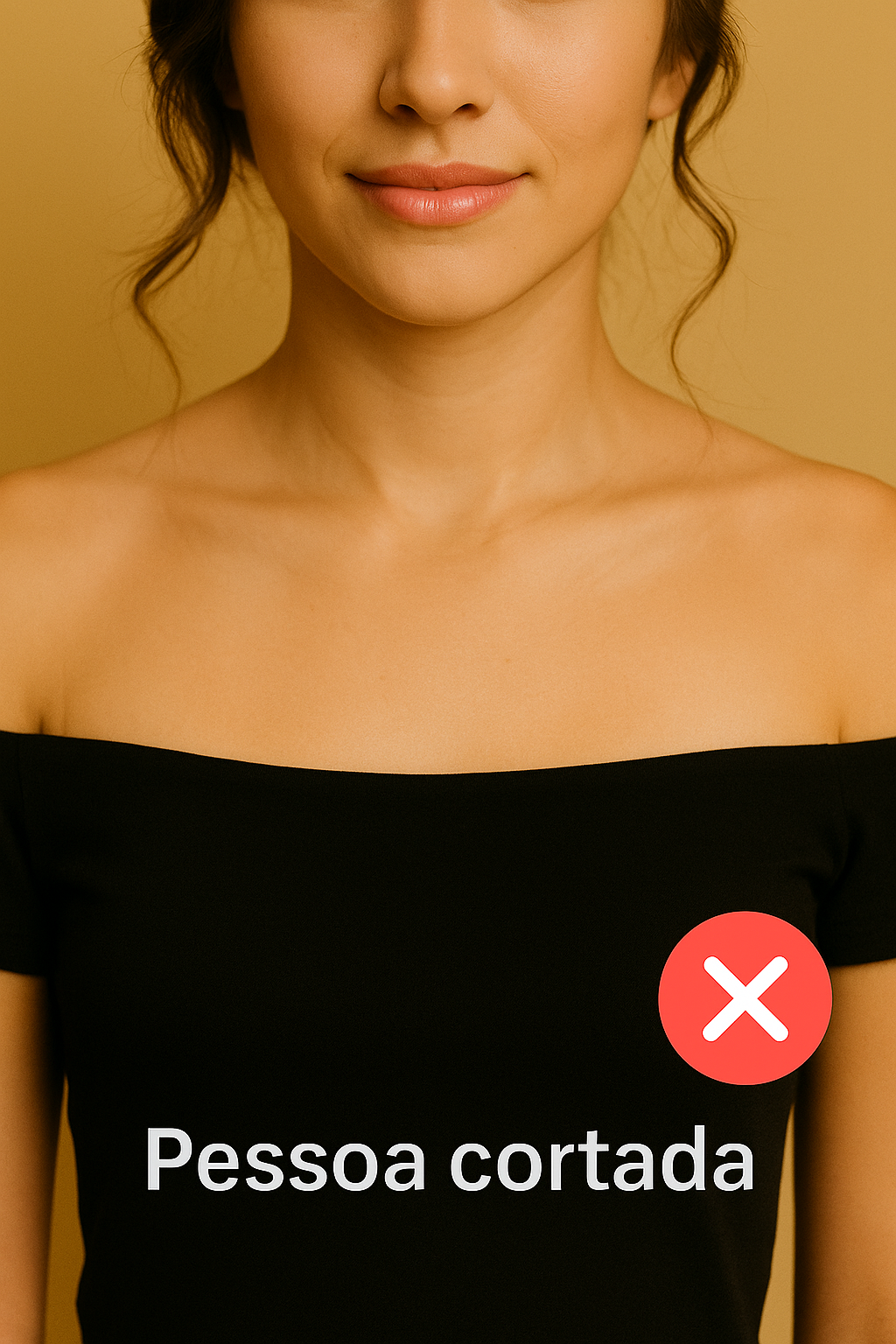 Evite fotos onde partes importantes (como a cabeça ou ombros) estão cortadas.