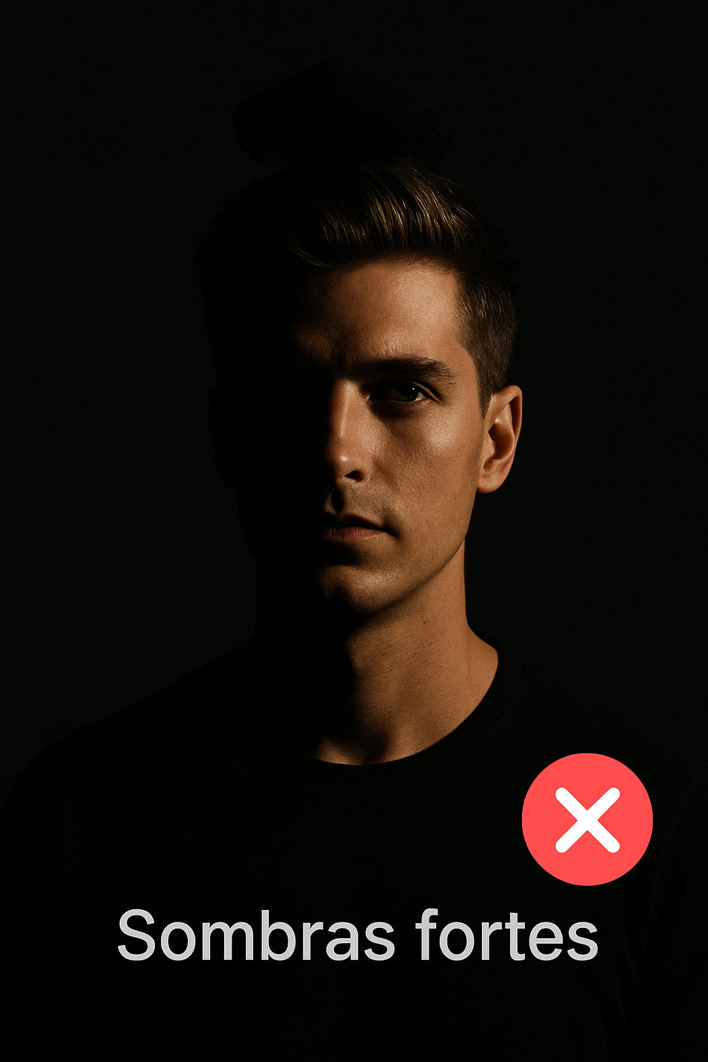 Evite fotos tiradas contra a luz, pois o rosto fica escuro e os detalhes se perdem.